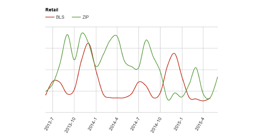 The ZipRecruiter National Jobs Report measures current and leading edge demand for employees across fourteen key industries by measuring relative month over month percent changes using the following benchmarks:
