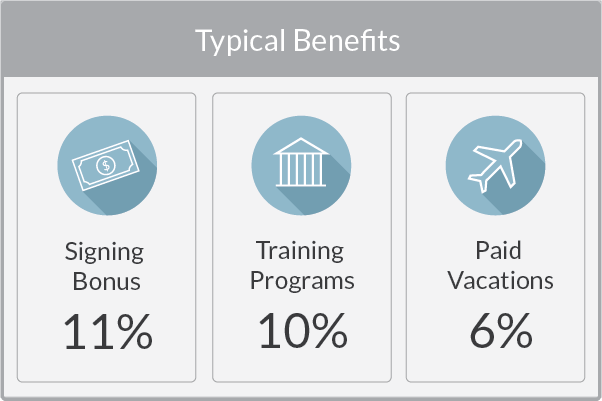 11% of companies included a signing bonus to sweeten the deal, 10% offered training programs for new hires, and 6% specifically mentioned a paid vacation as a benefit employees could take advantage of.