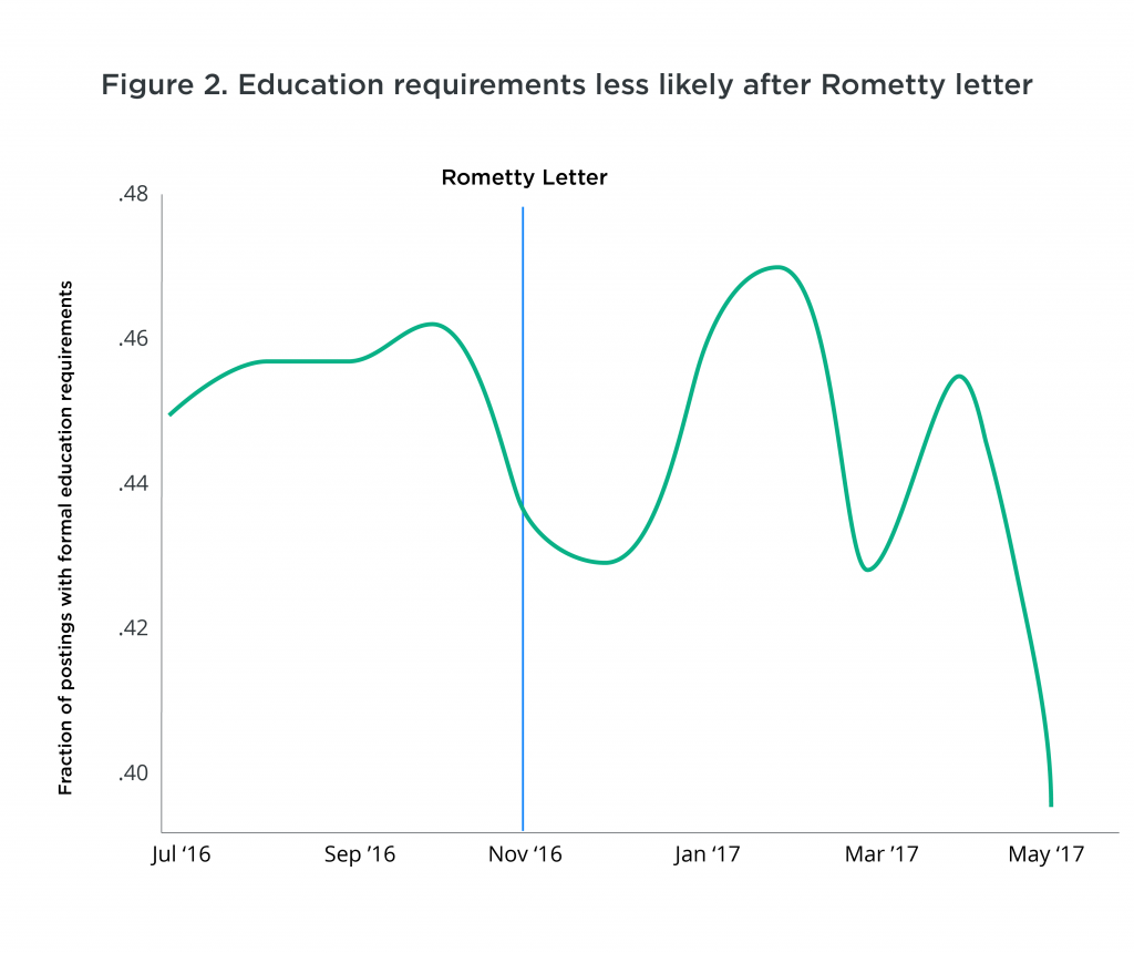 Figure 2. Education requirements less likely after Rometty letter