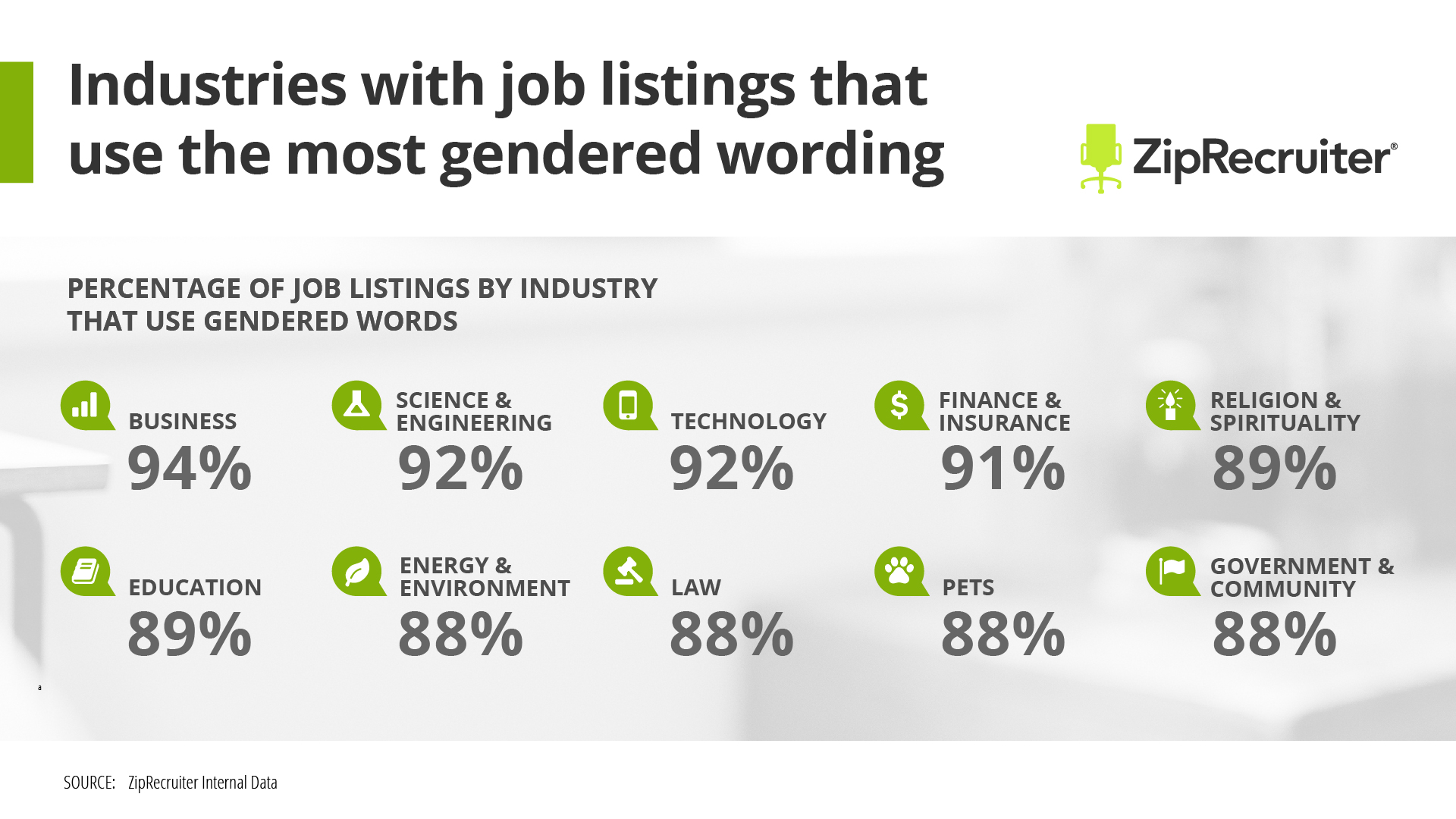 We quickly saw that gendered words, particularly male words, were widely used in all industries.