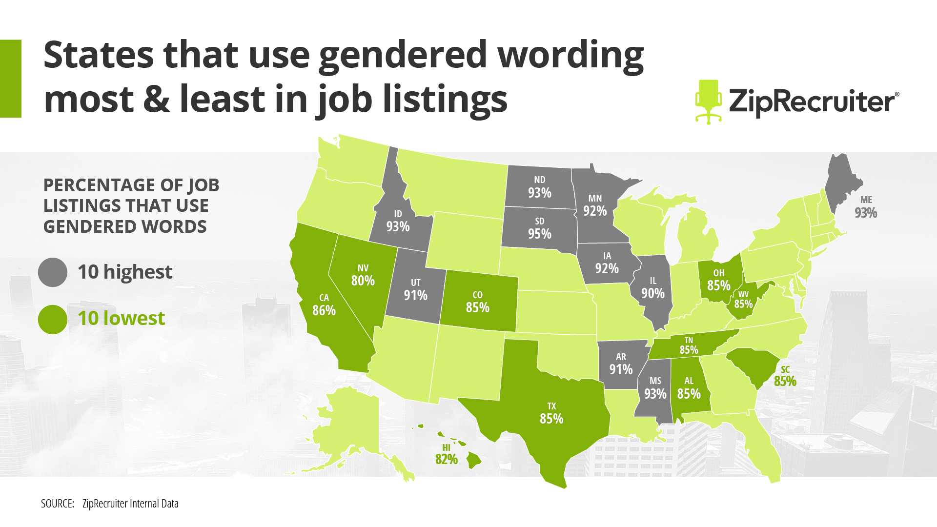 The team also looked at which states had comparatively more or less gender bias in their job listings.