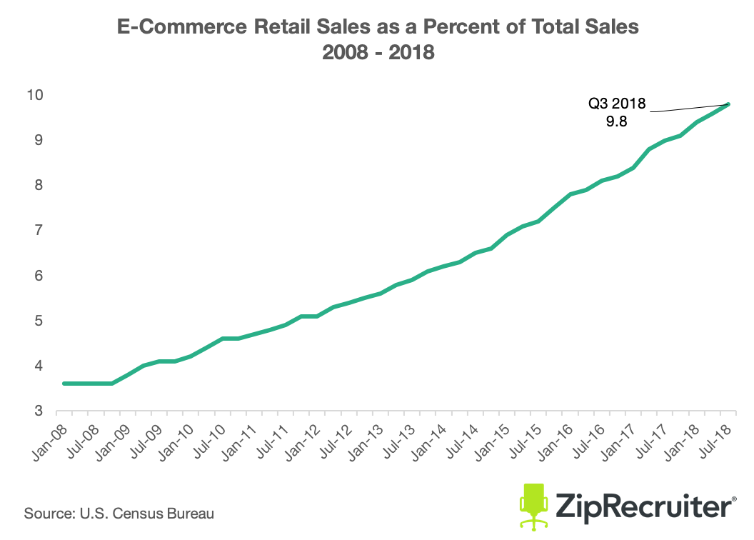 This month’s ZipRecruiter Industry Spotlight focuses on the transportation sector, which employs more than 4 million Americans. It takes a look at the five fastest-growing transportation industries of the past decade–those with the greatest percent growth in employment, as measured by the U.S. Bureau of Labor Statistics–and explores the reasons behind their expansions.